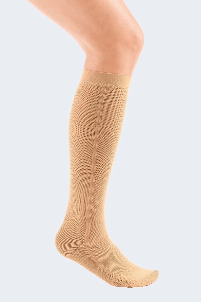 Flachgestrickter Kompressionsstrumpf mit mittlerer Wandstabilität